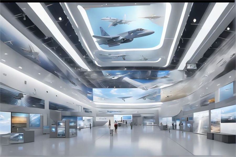 - 航空之光:該部分以中國自主研制的各型飛機(jī)為主角,如殲-5、運(yùn)-8、運(yùn)-20等,通過**飛屏互動(dòng)**設(shè)備在空中展示出飛機(jī)的外形和參數(shù),讓參觀者可以近距離觀看和感受。
