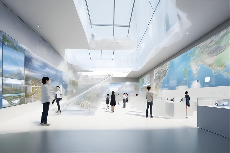 金華城市規(guī)劃館主題是“八婺攬勝·共建圖強”,寓意著以八婺山水為依托,以共建都市區(qū)為契機,以當好答卷人為目標,展現(xiàn)金華城市的魅力和潛力。市規(guī)劃館分為五個區(qū)域:攬勝序章、千年古韻、今日風采、明日藍圖和未來之光。以金華市和金義都市區(qū)的城市發(fā)展歷程、現(xiàn)狀、規(guī)劃和未來為內(nèi)容,以竹編工藝、木雕藝術、婺劇元素、八婺山水等為設計元素,以展板、圖片、視頻、雕塑、場景還原、數(shù)字沙盤、電子地圖、數(shù)據(jù)墻、VR體驗、立體投影、飛屏互動、電子簽名等為展示方式,以“攬勝之眼”、“千年時光機”、“婺劇舞臺”、“智慧金華”、“暢游金義”、“創(chuàng)新之窗”、“藍圖之眼”、“共建之路”、“未來之約”等為多媒體設備,力求打造一個集教育、展示、交流、體驗為一體的綜合性展廳,全方位地展現(xiàn)金華城市的魅力和潛力,增強市民的歸屬感和自豪感,吸引更多的投資者和游客來金華發(fā)展和旅游。